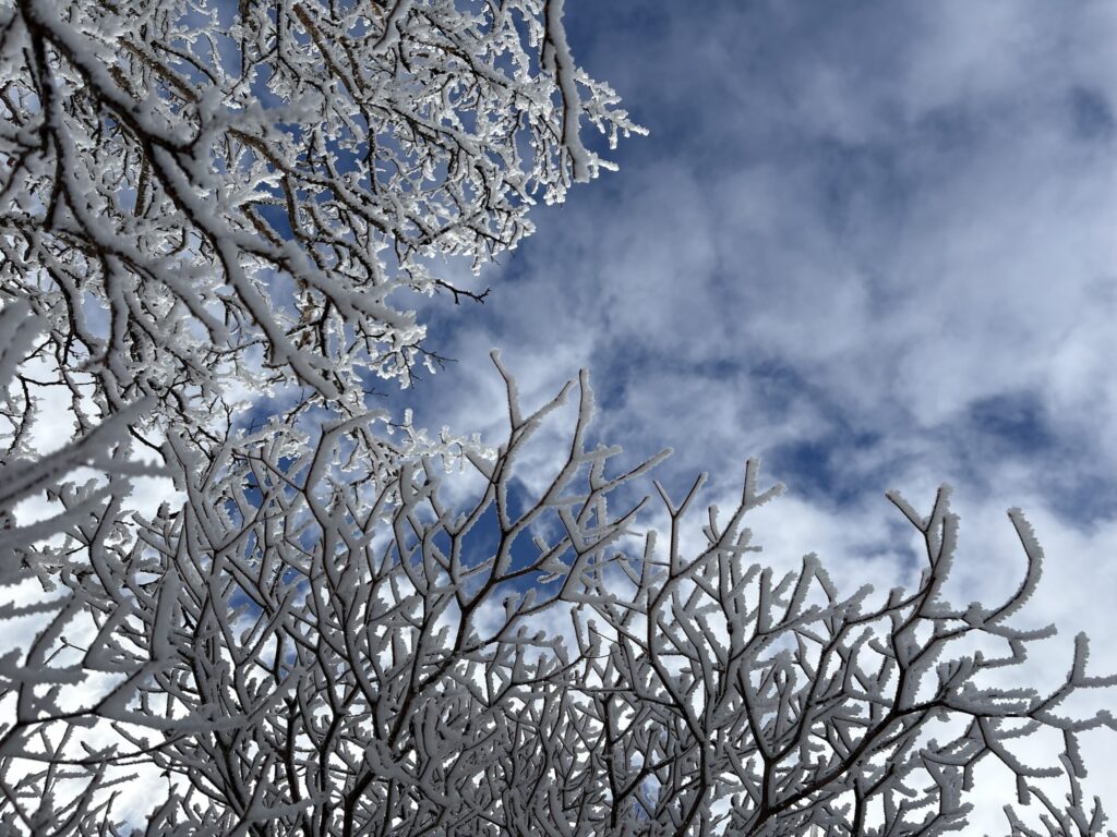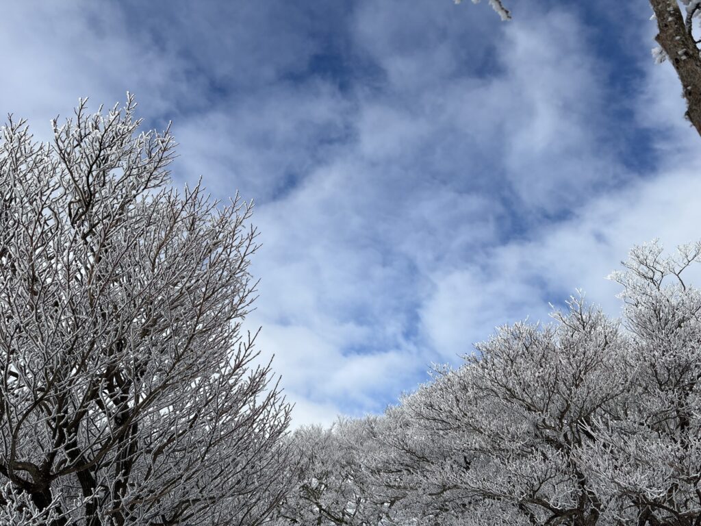 ペースは遅いながらも前進。前日・前々日の雪と青空の組み合わせは素晴らしく樹氷も見事。
